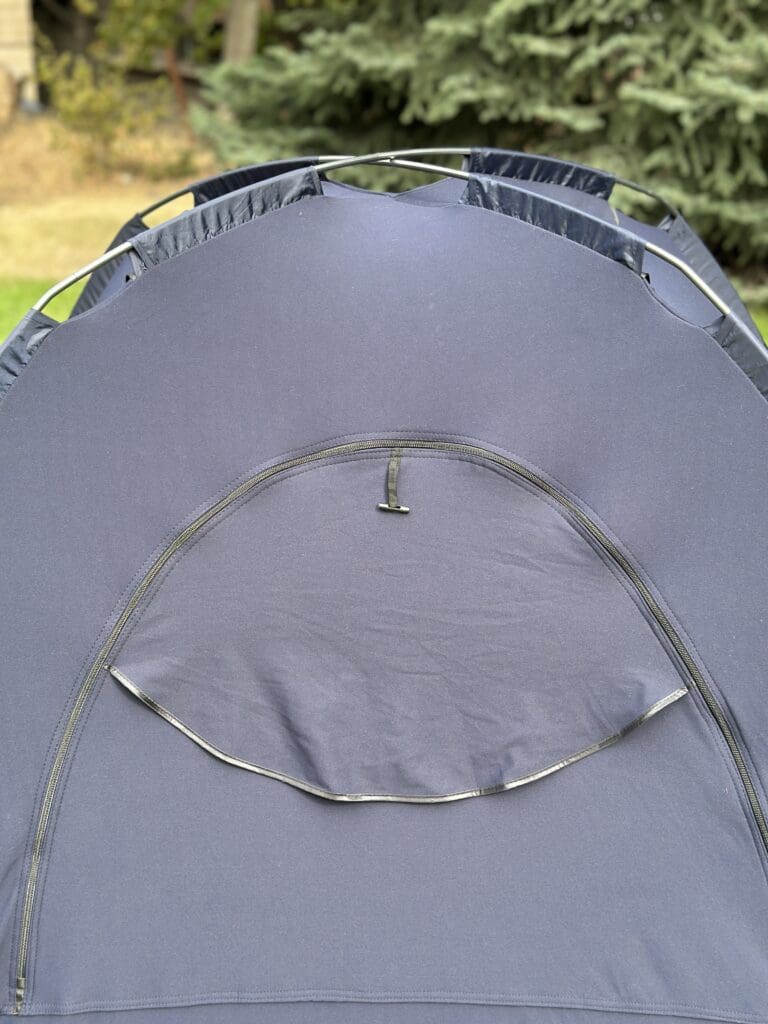 Hiccapop: The Hiccapop has six ventilation panels, which is two more than the SlumberPod. It also has the fan pocket at the bottom. The fabric is slightly more breathable due to its lighter weight construction. In my testing, the airflow felt very similar to the SlumberPod. The extra ventilation panels might provide a slight edge, especially in warmer climates.