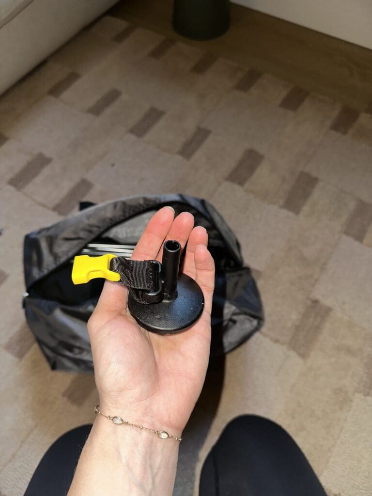 Two of my plastic circle feet popped off the poles. I could see some glue residue, so they definitely weren’t supposed to come off. When I tried to set the tent up again, the poles kept popping out when tension was put on both sides. I had to be more strategic with my setup process.