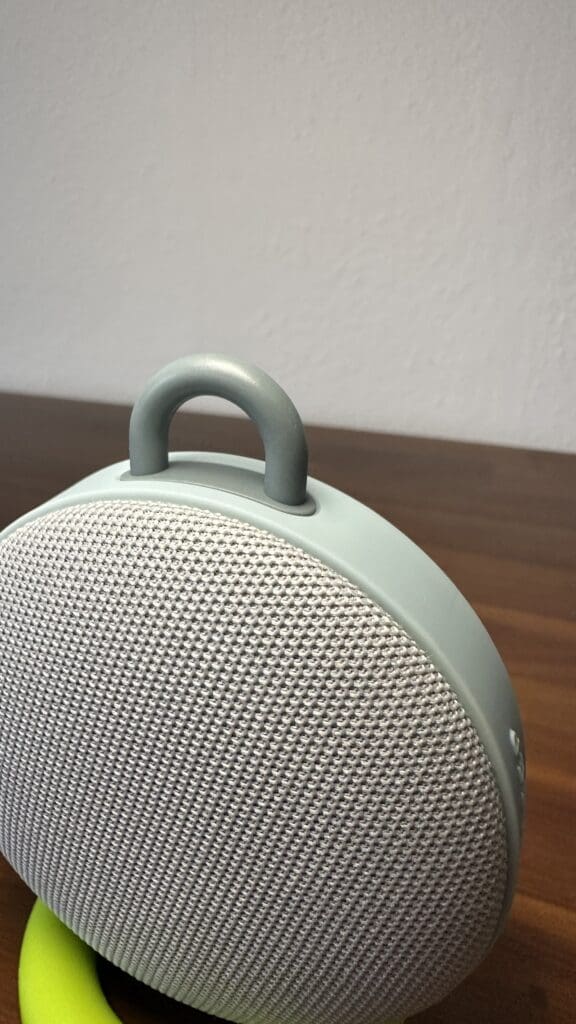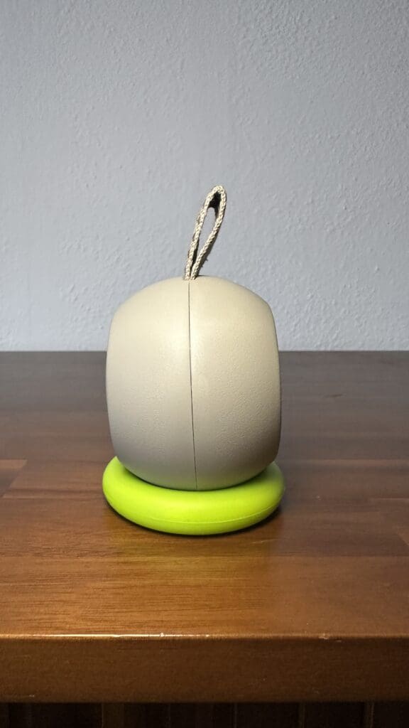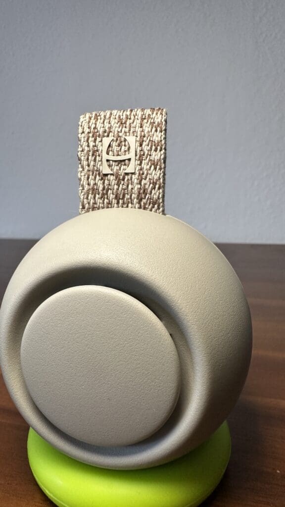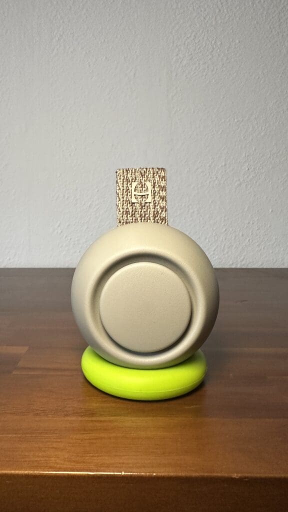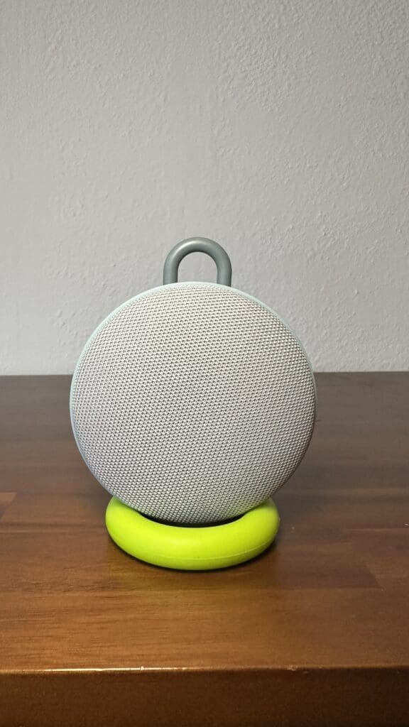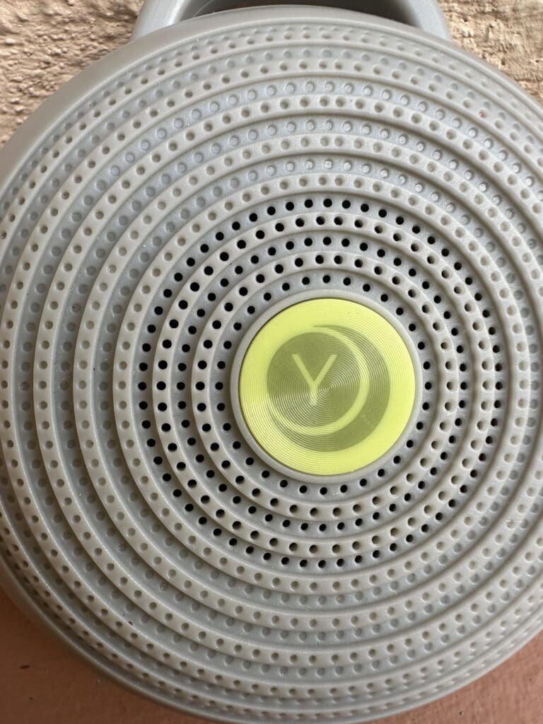 The volume is controlled by a rubber roller that makes zero noise like the others when you’re clicking through options. Plus, it has a nice silicon ring on the back, so it will stay place on most surfaces.