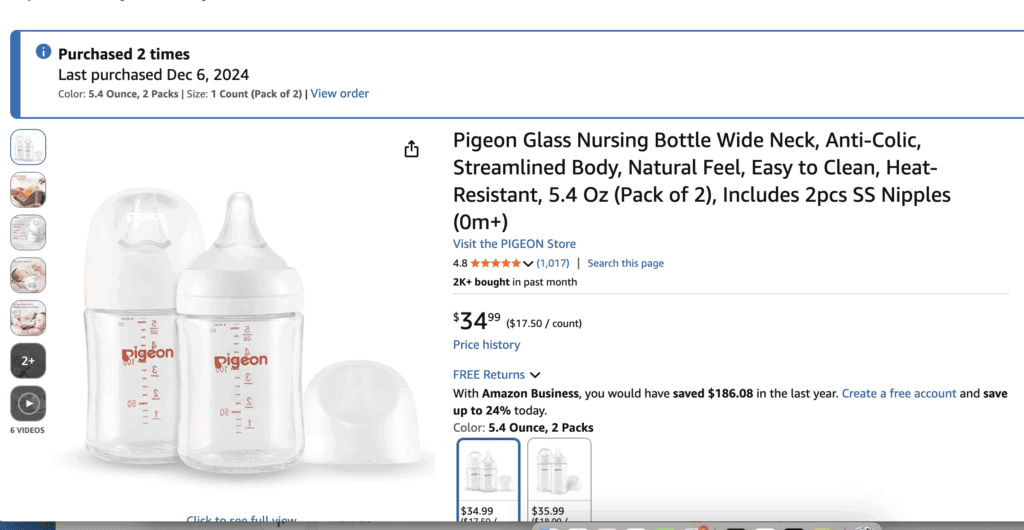 Pigeon Glass Nursing Bottles: Amazon | $34.99