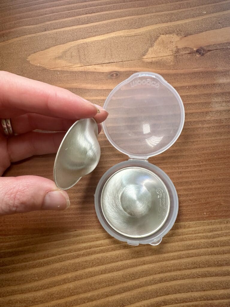 I became unhinged, desperate, and was in so much pain when I first started nursing. My nipples were purple, they were cracked and I cannot even begin to explain how sore they were. I was given nipple creams and disposable postpartum heating / cooling pads for nursing, and they worked, but it wasn’t miraculous. You know what product was… these Silverette Sterling Silver Nipple Cups.